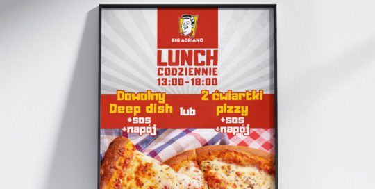 mmx2025-01-13T10:02:47+01:00Dla warszawskiej pizzerii Big Adriano projektuję materiały reklamowe - drukowane oraz na potrzeby internetu, niezbędne do codziennego funkcjonowania firmy. Tacki, menu, projekty na wyświetlacze, wszelkiej maści opakowania, czy koszulki dla obsługi. Trochę tego jest... Poniżej prezentuję skromny wycinek materiałów, które przygotowałem podczas wieloletniej współpracy. Plakaty [...]